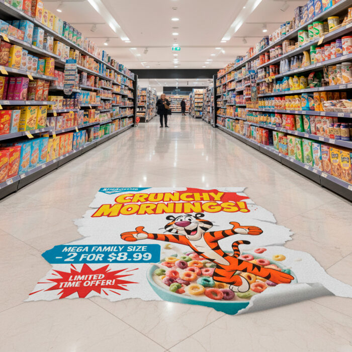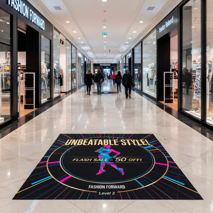 El Vinil con Floorgraphic es una solución diseñada para resistir tránsito constante sin perder calidad. Su recubrimiento especial antiderrapante y de alta durabilidad lo hace perfecto para áreas comerciales, pasillos, tiendas, supermercados, ferias y cualquier espacio donde necesites comunicar o dirigir al cliente directamente desde el piso.